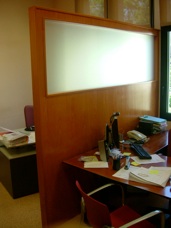 Hacemos distribuciones de espacio con mamparas de madera barnizada o para pintar.
